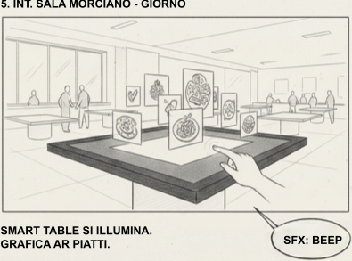 La narrazione racconta il percorso del cibo, valorizza filiere e sostenibilità e coinvolge il cliente in un’esperienza culturale e partecipativa.
