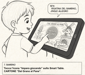 La mensa diventa spazio di socialità con tecnologie non invasive; contenuti ludici educano i bambini e rafforzano la comunità.